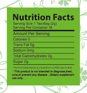 One box includes 12 tea bags with a net weight of 0.85 oz. (24g)