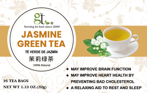 Grown high in the hills of China, our Jasmine flowers leaves are harvested in early spring during the cool morning mists and stored until late summer when fresh jasmine flowers are in bloom. Carefully blended with our premium Green Tea leaves, it produces the flavor of highly fragrant and subtly sweet Jasmine Green Tea.