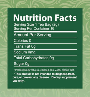 One box includes 20 tea bags with a net weight of 0.91 oz. (26g)