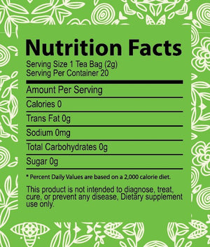One box includes 20 tea bags with a net weight of 1.4 oz. (40g)