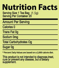 One box includes 20 tea bags with a net weight of 1.058 oz. (30g)